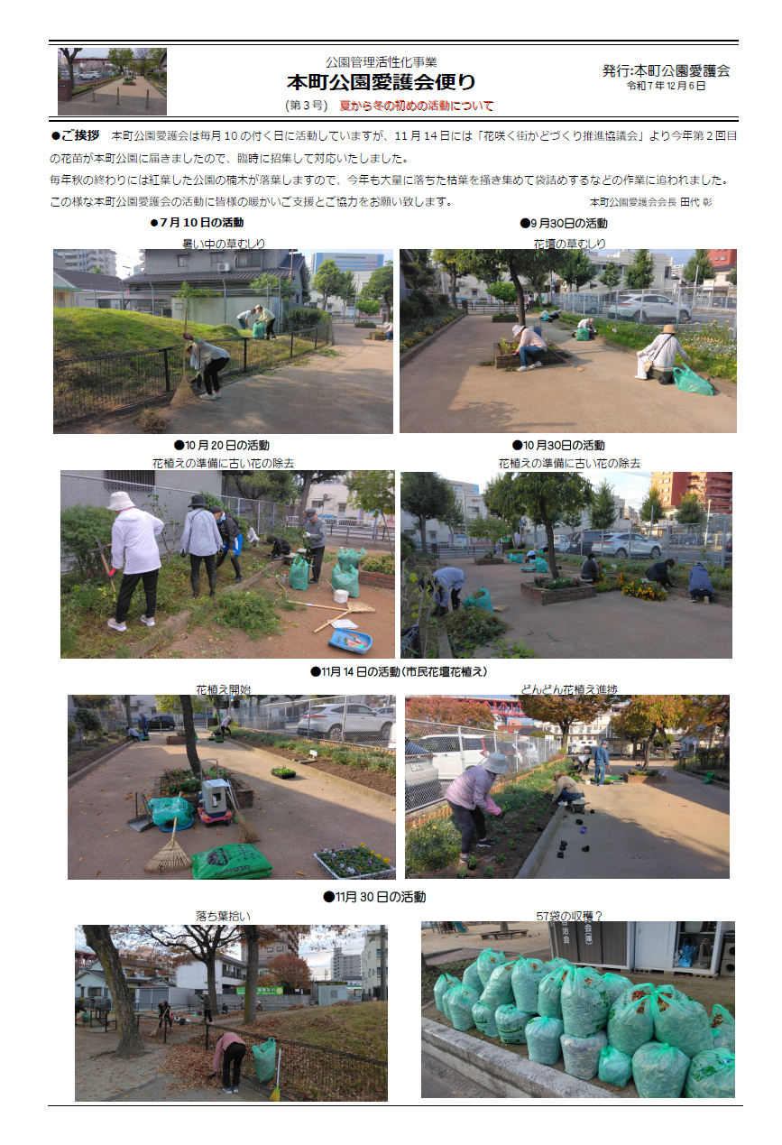 令和7年 本町公園愛護会便り |
