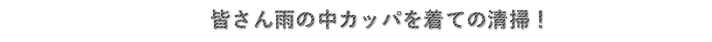 早速、7つ道具を持って4班に分かれて、皆さんが勢いよく雨の中、清掃に向かいました。