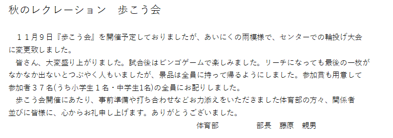 秋のレクレーション 歩こう会